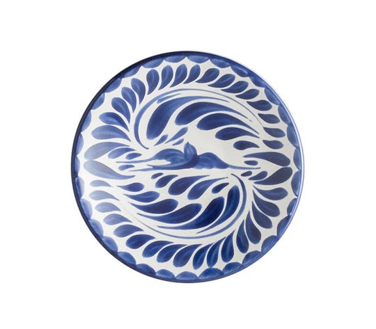 Caja de 1 pieza de Plato Moka Anfora, Puebla de 12 cm. Al ser piezas pintadas a mano, en ocasiones pueden presentarse ligeras y menores variaciones en el color o en el sombreado. Las dimensiones y capacidades son aproximadas dentro de las tolerancias de fabricación.