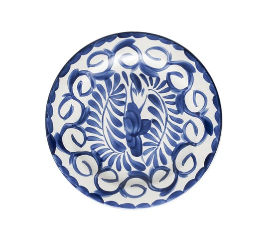 Caja de 1 pieza de Plato Trinche Anfora, Puebla de 23 cm. Al ser piezas pintadas a mano, en ocasiones pueden presentarse ligeras y menores variaciones en el color o en el sombreado. Las dimensiones y capacidades son aproximadas dentro de las tolerancias de fabricación.